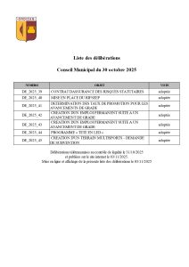 Liste des délibérations et délibérations du 30/10/2025